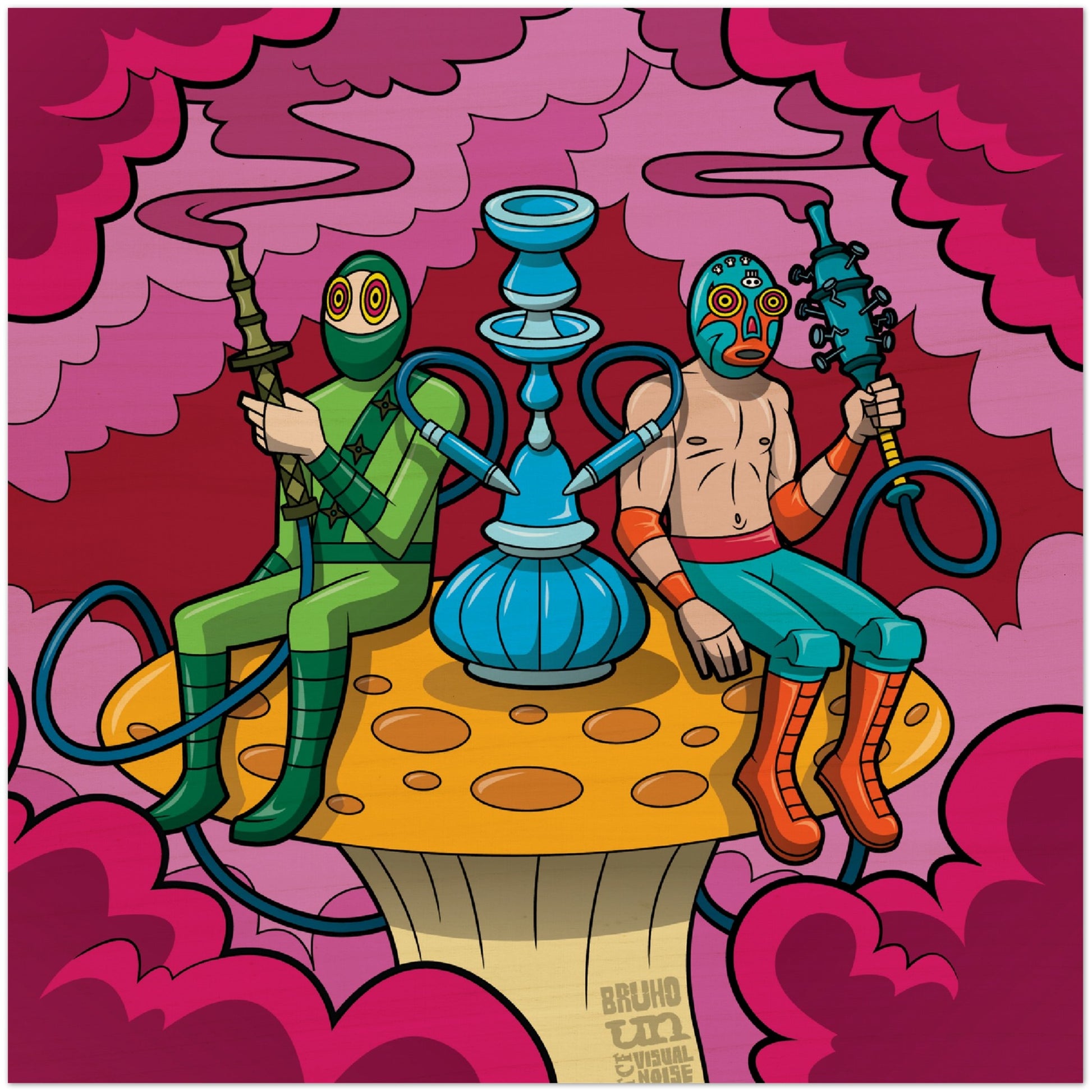 Bruho and Urban Ninja Flying Wood Print