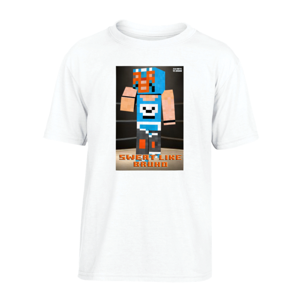 This is for your active little luchadores. A Minecraft Sweat Bruho in the front coupled with a Running Bruho en Chinga in the back!