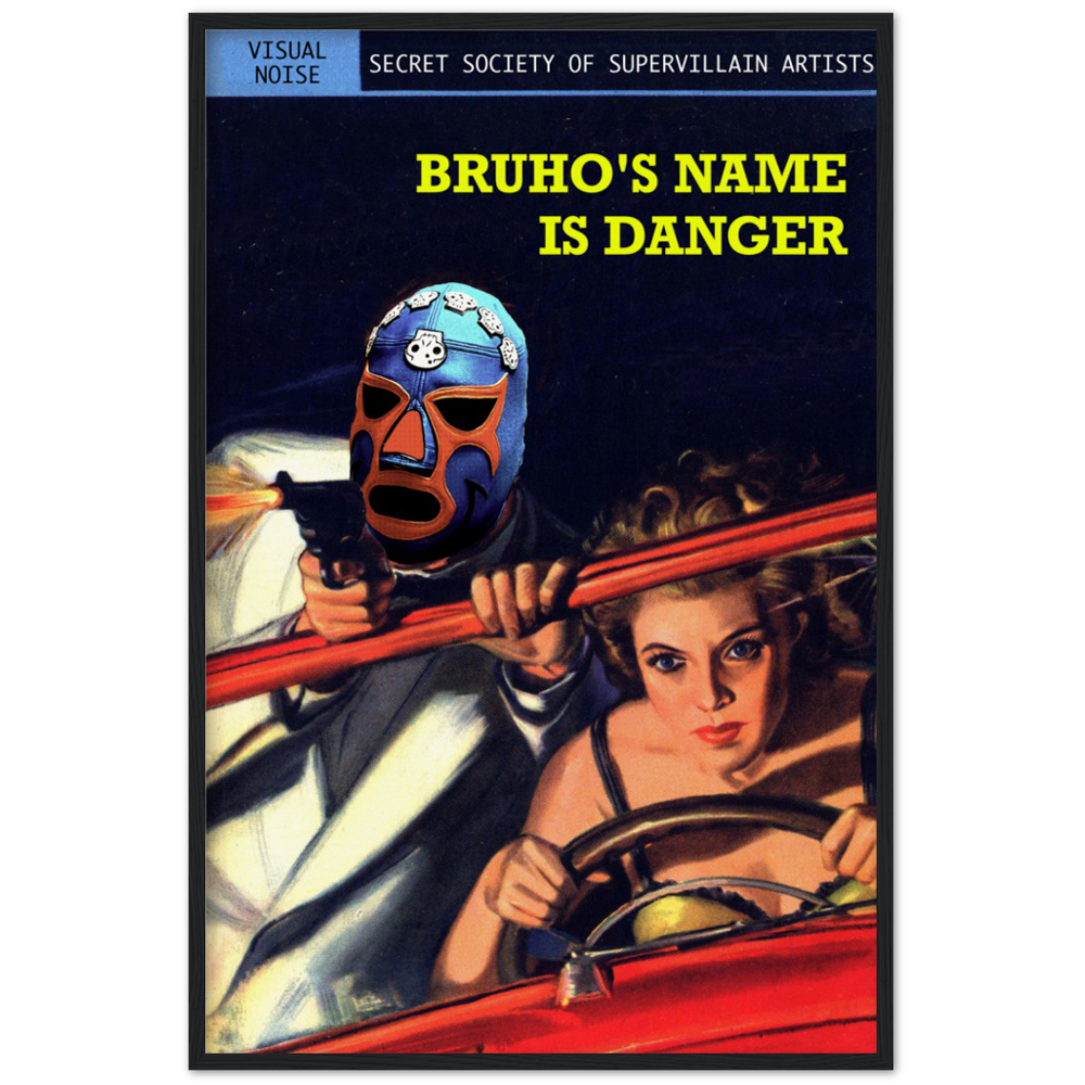If your name is danger as well, you need this edited pulp cover for your living room. A luchador shooting from a getaway car driven by a mysterious lady partner. Is he a spy? A robber?