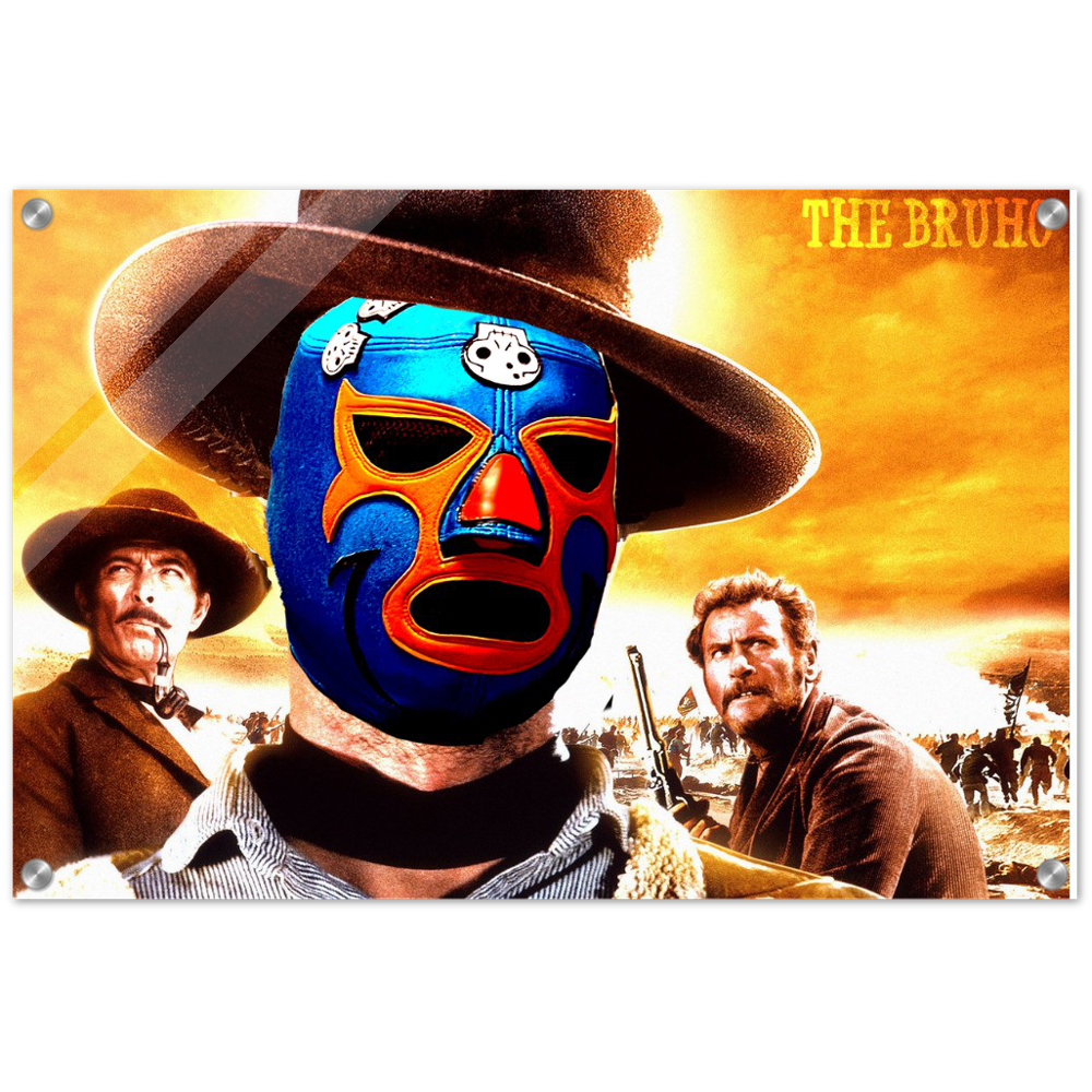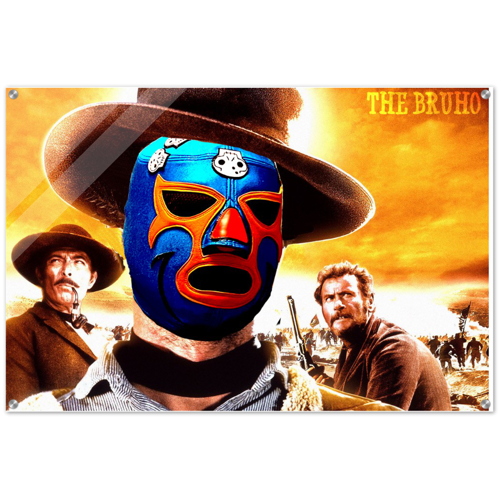 Bruho has his bad and ugly friends alongslide in this western luchador glossy acrylic print.
